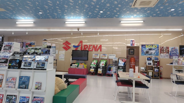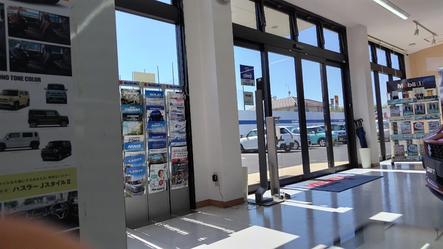 工事中ですが、分かり易く営業中の看板がでていました。中は広々としてゆったり過ごすことが出来ました。新しいパンフレットが色々と並べられているので、次の車を検討しやすいです。