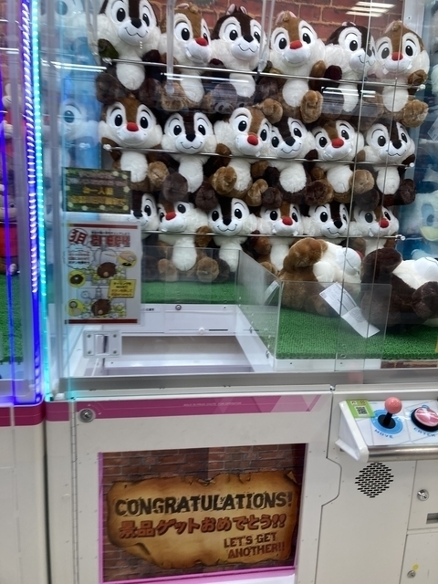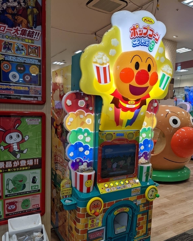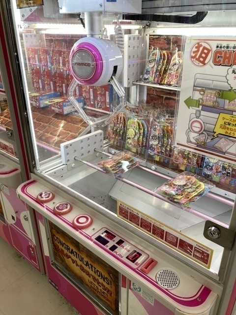ガチャガチャをやりにきたのですが、子供と一緒にクレーンゲームにハマってしまいました。 取れそうなんだけどあとちょっとで取れなくて。 結局息子が大きなポテトチップス取れただけでしたけど楽しい時間過ごせました。