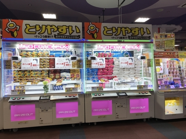 初心者にも優しいUFOキャッチャーコーナーがあるのが嬉しい!実際あまりやったことのない私でもたべっ子どうぶつが取れました!