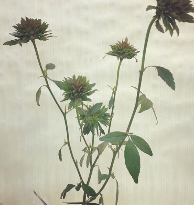 珍しいバラ が入荷!緑一色 と書いて「りゅういーそー」と読むそうです。麻雀の言葉だそうです。ガクが重なって花になったとか…名前の通りの緑一色!
